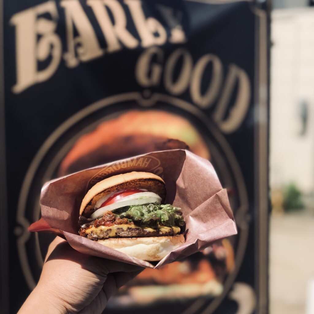 出店情報キッチンカー 4/4 アーリーグッド|三河牛バーガー等 豊川市、豊橋市などの東三河や静岡県をメインに、アメリカンな雰囲気が印象的なキッチンカーでハンバーガーを提供する有吉さん。目の前で調理してくれるライブ感あふれるハンバーガーは、ジューシーなみかわ牛とふんわりとしたバンズ、そして野菜のバランスが絶妙で多くのファンに愛されている。 「アーリーグッド」のインスタグラムはこちらから