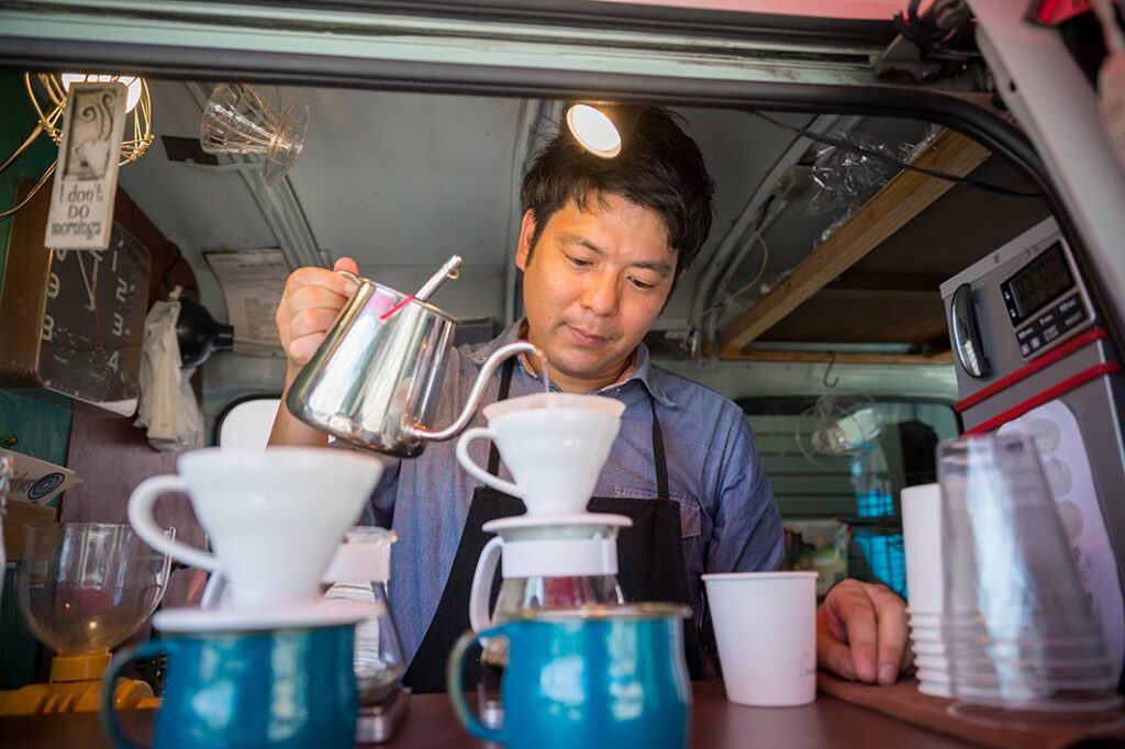 淹れたて・挽きたて・煎りたてを大切にした移動販売珈琲を提供している蒼さん。